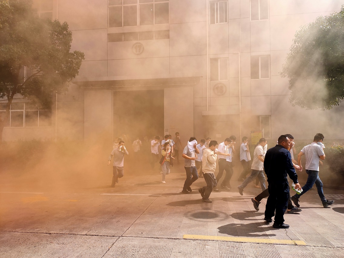 此次演練,包含兩方面內(nèi)容:一是T幢模擬火災(zāi)事故的現(xiàn)場救援與逃生疏散演練;二是事故發(fā)生后對環(huán)境的檢測和處置演練。公司邀請?zhí)炫_縣消防大隊全程專業(yè)指導(dǎo),并參與演練。公司總部參加人員包括:安全環(huán)保委員會成員、警隊、T幢全體員工等相關(guān)人員共500余人。各部門、事業(yè)部/工廠/子公司安全員及生產(chǎn)管理相關(guān)人員觀摩了此次演練。